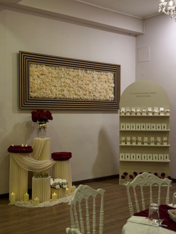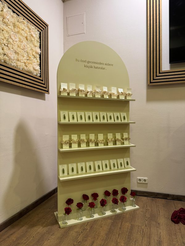Unsere Empfangswand bietet Platz für die Gastgeschenke und könnte auch als Sitzplan genutzt werden.
